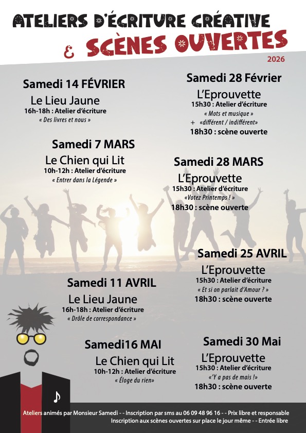 J’anime des ateliers d’écriture et scènes ouvertes depuis de nombreuses années ; en lien avec mes concerts ou en tant que modules autonomes.